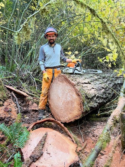 A week later, with the rains passed and personal batteries recharged, I return to cut and move the final tree. Rounding the corner, I find a surprise. The downed tree has been cleanly bucked up and the tangle of limbs and tops are carefully piled. But how can this be? Years of experience have taught me that “if I don’t do it, it’s not getting done”. This welcome disjoint between expectations and realities reminds me that we have crossed the line from one chapter of forest leadership into the next. Our son, recently returned from distant travels and gladly accepting forest leadership, followed in my road clearing tracks, spotted where taking care was needed and took care of it. Just as the forest is an interconnected and interdependent web of relationships, our family is as well. Adapting and flexing as changing conditions demand.